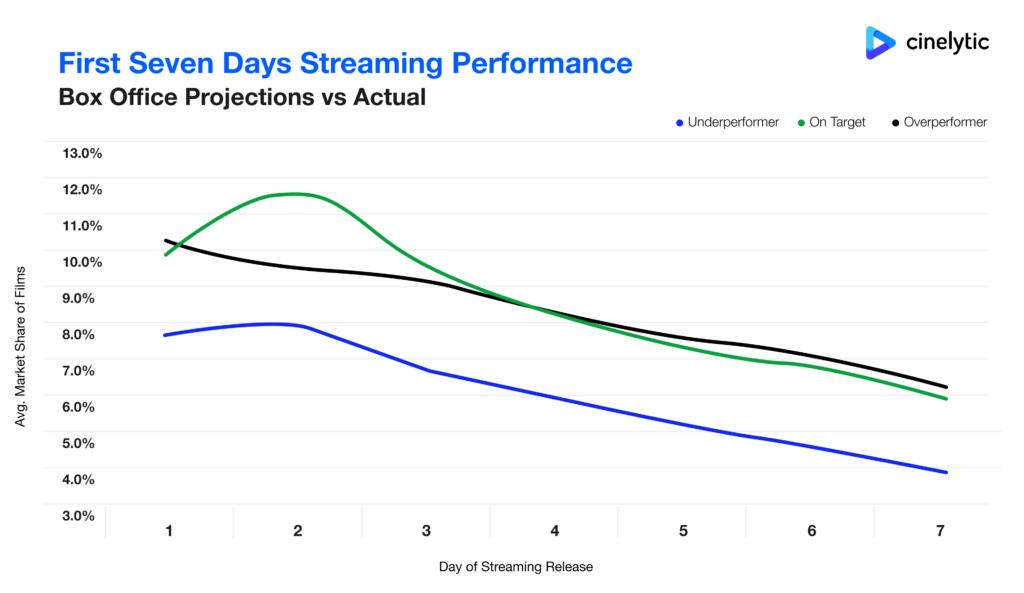 Similarly, films that perform on target at the box office tend to be the most efficiently marketed and accurately positioned, arriving on streaming with strong awareness without the volatility associated with underperformance or overexposure.