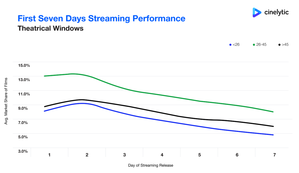 The continued strength of the 26-to-45-day window reflects a critical balance between theatrical momentum and streaming freshness. Films in this range benefit from having enough time in theaters to build awareness and cultural relevance, while still transitioning to digital at a point when audience demand remains high.